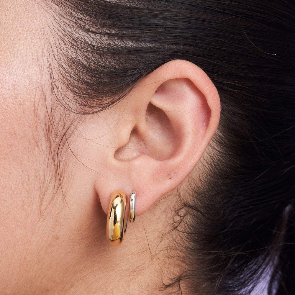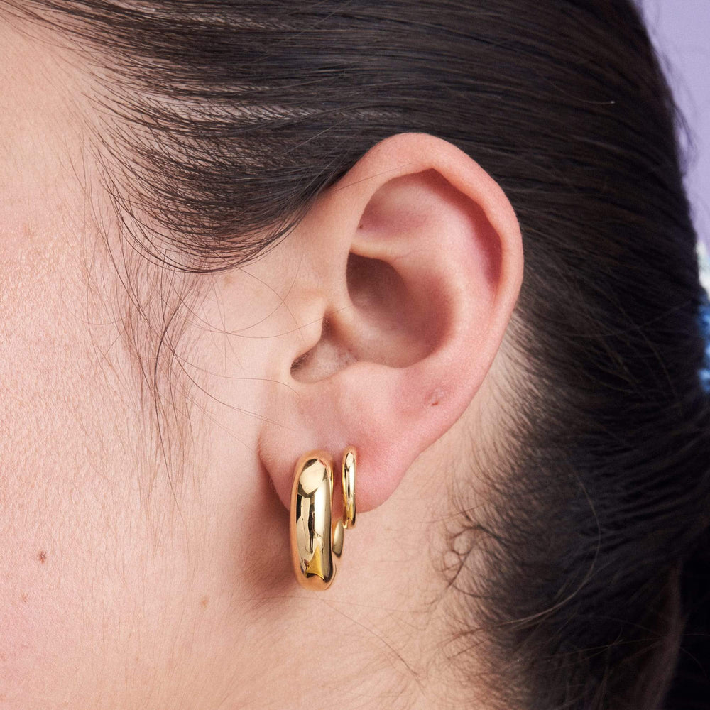 We designed this set for people who may only have one piercing per ear but would love to alternate. Perhaps during the week when you’re working your butt off Quinn's are just what you need, but when the weekend comes and it's time to let your hair down and get loud with a pair of Sashas. Or, if you have two piercings why not stack them together all week and just kick ass wherever you go? That would be pretty cool too.